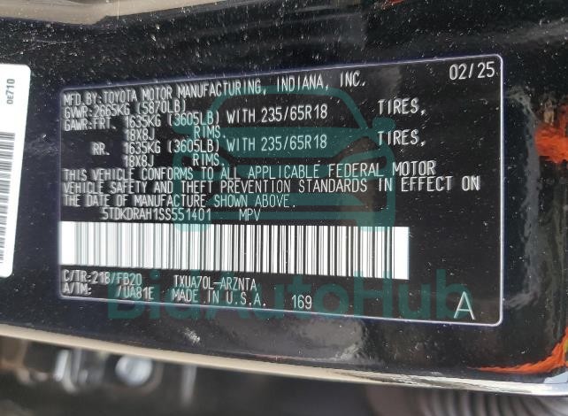 | VIN | 5TDKDRAH1SS551401 |