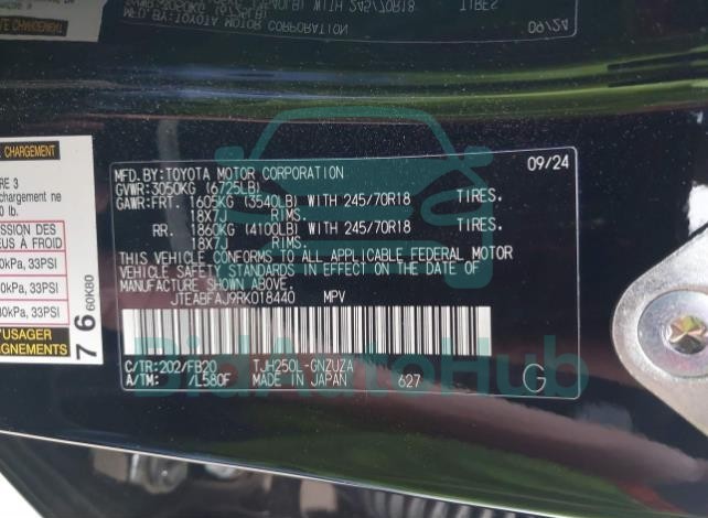 For a full understanding of the condition of this TOYOTA LAND CRUISER 2024 - VIN: JTEABFAJ9RK018440, it is strongly advised to analyze all available materials β€” both technical specifications and auction photographs. Such analysis provides the most objective picture of the car’s history, its advantages, and its potential defects.