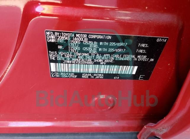 | VIN | JTMRFREV2ED094882 |