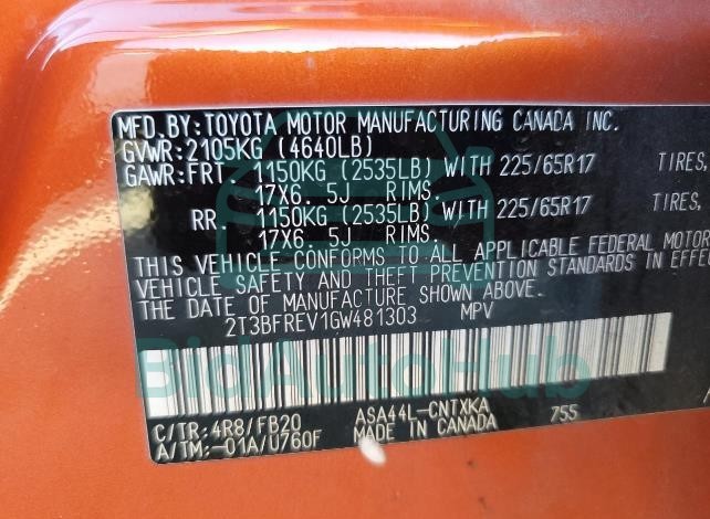 | VIN | 2T3BFREV1GW481303 |