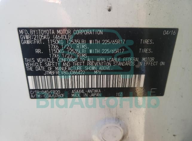 | VIN | JTMBFREV8GJ086422 |
