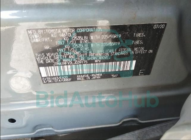 For a full understanding of the condition of this TOYOTA RAV4 2020 - VIN: JTMA1RFV2LJ039115, it is strongly advised to analyze all available materials β€” both technical specifications and auction photographs. Such analysis provides the most objective picture of the car’s history, its advantages, and its potential defects.