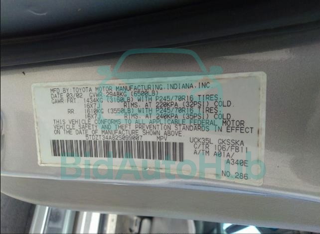 | VIN | 5TDZT34A82S099007 |