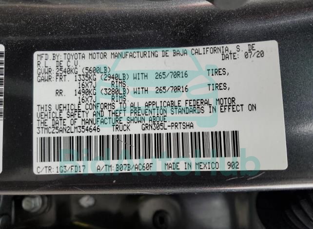 For a full understanding of the condition of this TOYOTA TACOMA 2020 - VIN: 3TMCZ5AN2LM354646, it is strongly advised to analyze all available materials β€” both technical specifications and auction photographs. Such analysis provides the most objective picture of the car’s history, its advantages, and its potential defects.