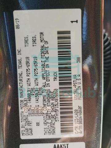 The TOYOTA TUNDRA 2020 - VIN: 5TFHY5F15LX876860 is equipped with a 5.7l 8 engine. This power unit is known for its efficiency and reliability, and it is part of modern generation of engines designed to balance performance with fuel economy. According to the auction data, the vehicle was registered with only Unknown of mileage at the time of sale.