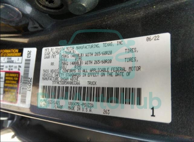 For a full understanding of the condition of this TOYOTA TUNDRA 4WD 2022 - VIN: 5TFNC5DB5NX003366, it is strongly advised to analyze all available materials β both technical specifications and auction photographs. Such analysis provides the most objective picture of the carβs history, its advantages, and its potential defects.