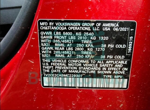 Each lot presented on our website includes comprehensive information tied to the VIN code. This allows users to cross-check vehicle data, verify the history of ownership, and confirm accident or insurance records. The VOLKSWAGEN ATLAS CROSS SPORT 2021 - VIN: 1V2CE2CA5MC229307 corresponds to a car that was listed through one of the large insurance auctions in USA, which guarantees traceability and transparency of the information.