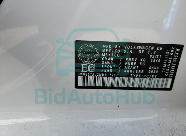 VOLKSWAGEN GOLF 2021 — VIN: 3VWG57AU3MM017207