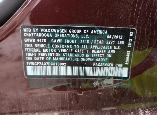| VIN | 1VWCP7A37DC018992 |