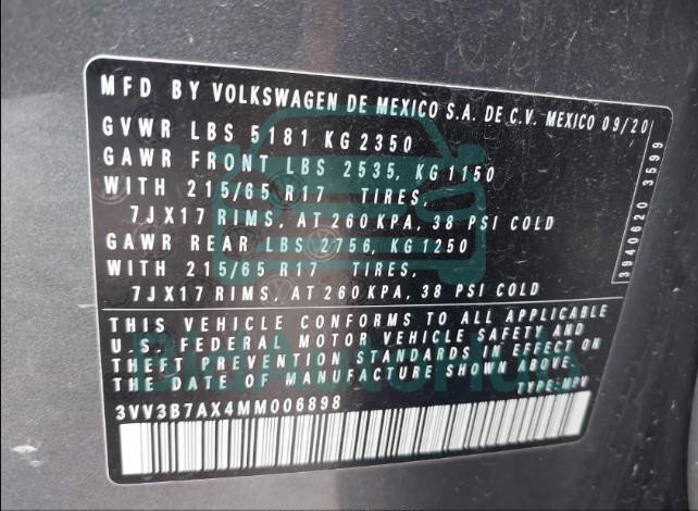 For a full understanding of the condition of this VOLKSWAGEN TIGUAN 2021 - VIN: 3VV3B7AX4MM006898, it is strongly advised to analyze all available materials β both technical specifications and auction photographs. Such analysis provides the most objective picture of the carβs history, its advantages, and its potential defects.