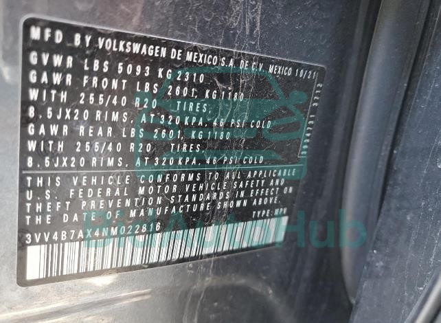 | VIN | 3VV4B7AX4NM022816 |