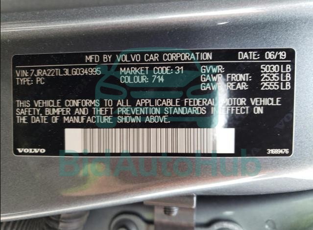 This VOLVO S60 2020 - VIN: 7JRA22TL3LG034995 was originally purchased at one of the major insurance auctions in the United States or Canada. The vehicle history is tied directly to its VIN code, which makes it possible to track the origin, condition, and circumstances of the sale. The photographs provided represent the actual state of the car at the moment of auction and serve as an important visual record of its technical and cosmetic condition.
