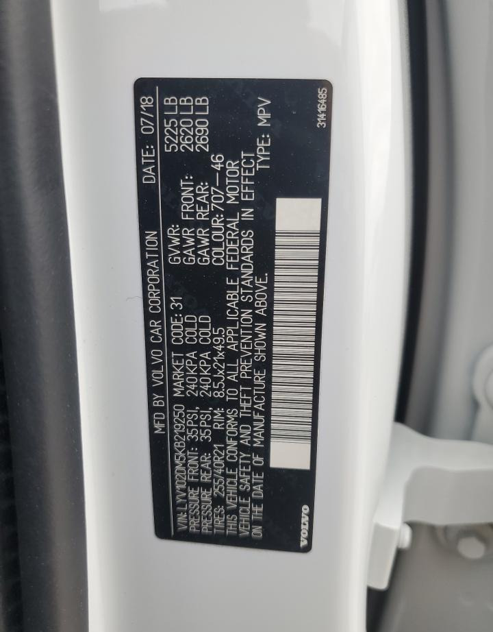 | VIN | LYV102DM5KB219250 |