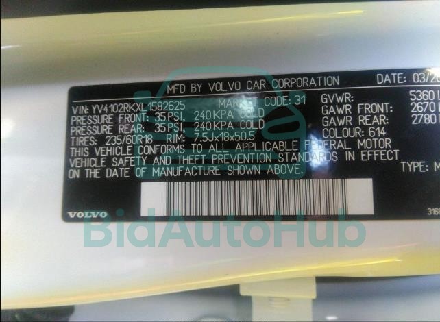 Each lot presented on our website includes comprehensive information tied to the VIN code. This allows users to cross-check vehicle data, verify the history of ownership, and confirm accident or insurance records. The VOLVO XC60 2020 - VIN: YV4102RKXL1582625 corresponds to a car that was listed through one of the large insurance auctions in USA, which guarantees traceability and transparency of the information.
