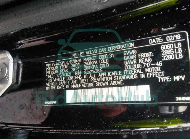 Each lot presented on our website includes comprehensive information tied to the VIN code. This allows users to cross-check vehicle data, verify the history of ownership, and confirm accident or insurance records. The VOLVO XC90 2018 - VIN: YV4A22PL3J1370491 corresponds to a car that was listed through one of the large insurance auctions in USA, which guarantees traceability and transparency of the information.